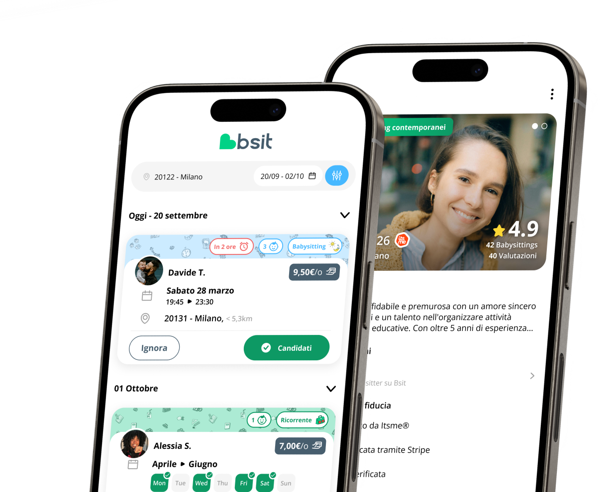 Su Bsit puoi proporti per lavori di babysitting pubblicati dalle famiglie della tua zona sulla bacheca.